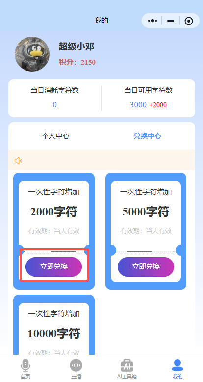 兑换字符仅当天有效